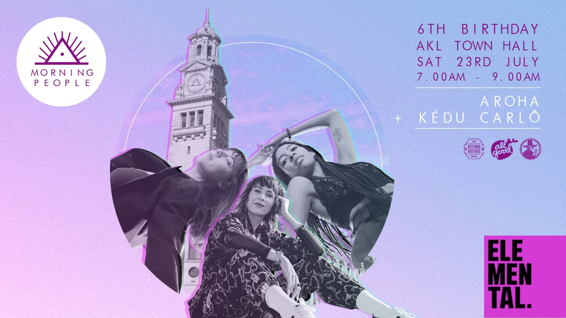 We’re turning six, and to celebrate we’re taking over the iconic Auckland Town Hall with electronic music queen Aroha and acid lords Kédu Carlö!