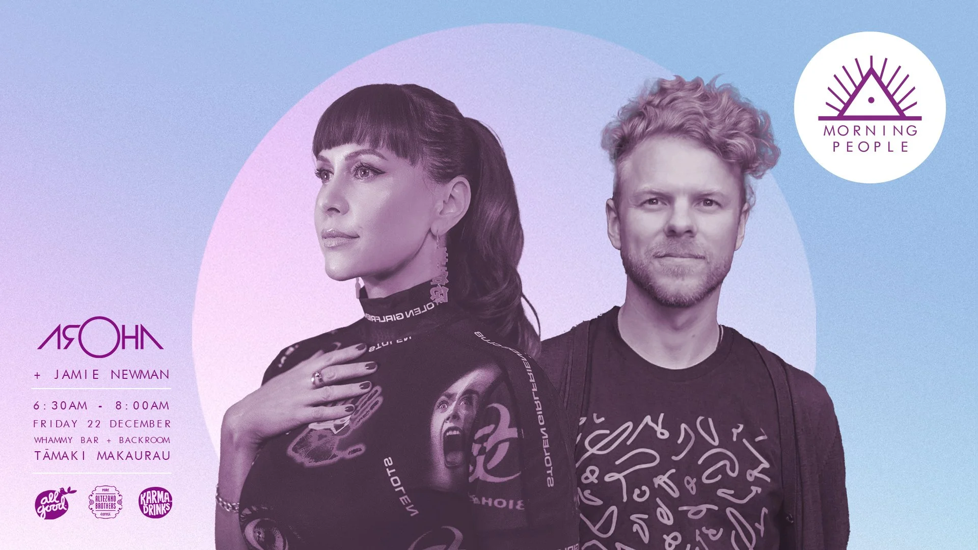 *** Morning People Tāmaki Makaurau feat. Aroha + Jamie Newman 6:30 am to 8:00 am Friday 22nd December Whammy Bar + Backroom 183 Karangahape Road Auckland ***